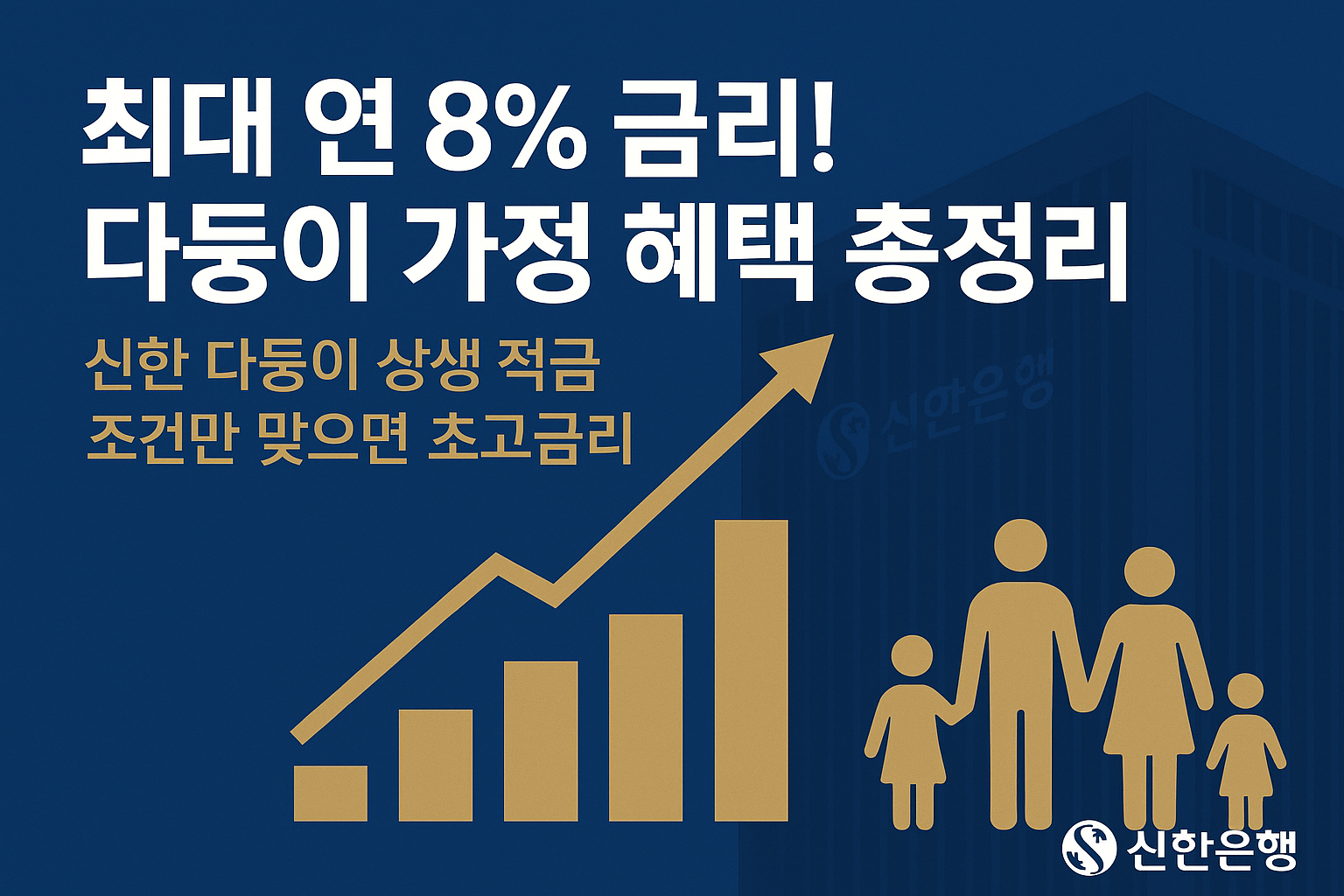 반응형최고 연 8.0% 신한 다둥이 상생 적금! 저출생 극복을 위한 파격적인 금리 혜택, 2자녀 이상 다자녀 가정은 물론 결혼, 임신, 출산 가구라면 절대 놓치지 마세요!