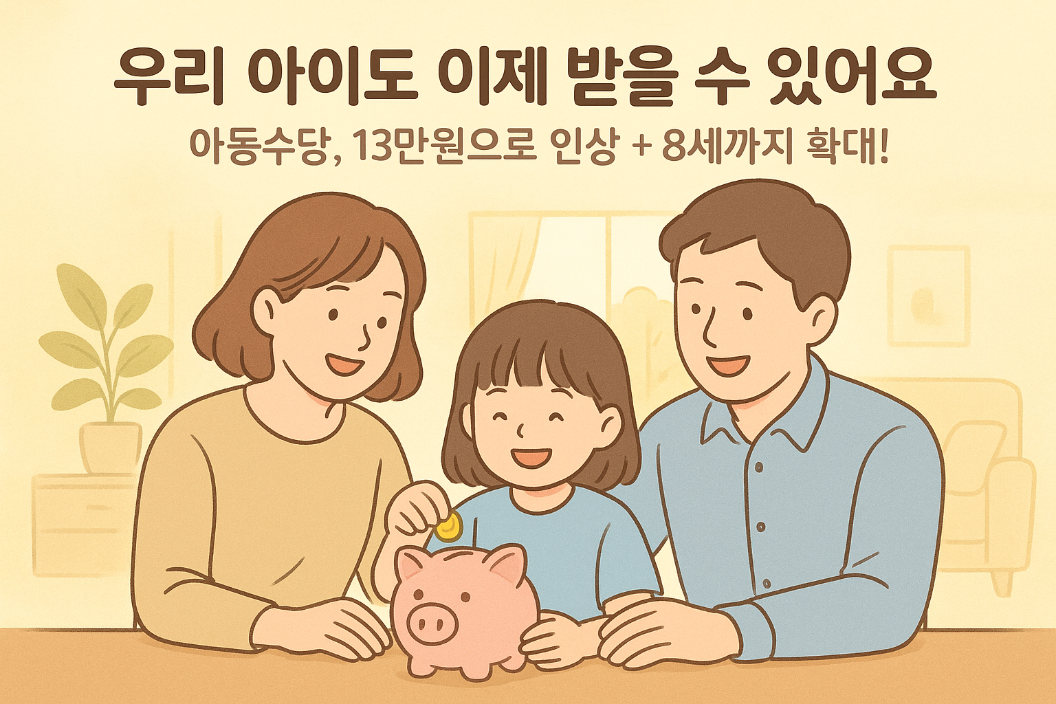 내년부터 시행되는 ‘아동수당 13만 원, 만 8세까지 확대 정책’은 양육 부담을 실질적으로 줄여주는 정말 의미 있는 변화입니다.