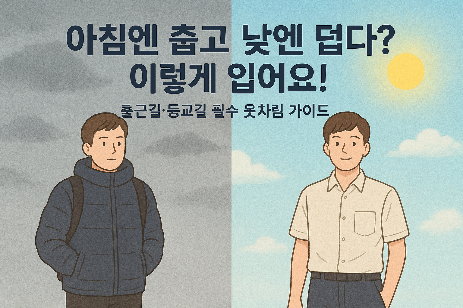 매일 아침 옷장 앞에서 "오늘 뭐 입지?"를 외치는 분들, 모두 주목해주세요! 특히 요즘 같은 환절기에는 아침엔 쌀쌀했다가 낮에는 여름처럼 더워서 옷차림 실수를 하기 딱 좋잖아요. 저도 그래서 감기에 걸릴 뻔한 적이 한두 번이 아니랍니다. 이 글만 끝까지 읽으시면, 앞으로 날씨 때문에 옷차림 고민할 일은 없으실 거예요! 😊